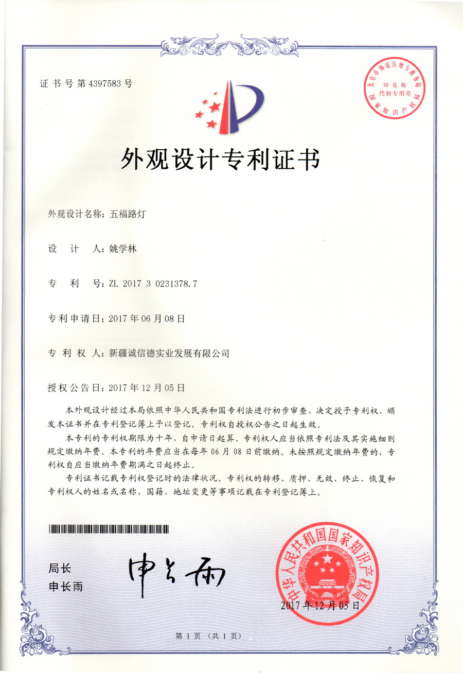 (专利)五福路灯
